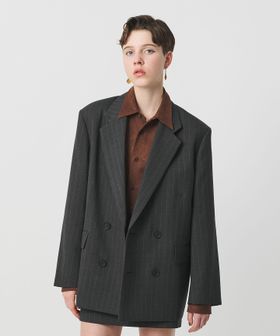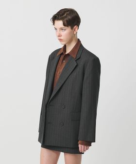 <H>ストライプ ダブルクロス ダブルブレストジャケット