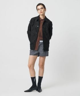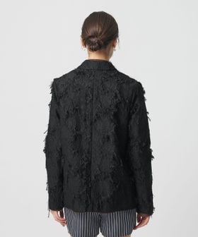 ミニマルなボディに載せた、毛足のあるランダムな表情が印象的なブルゾンです。タテ糸にナイロン、ヨコ糸にコットンとポリエステルを使用したカットジャカードを採用。ボディに溶け込んだサイドポケット付きの使い勝手のよさも魅力です。きれいめなスラックスはもちろん、カジュアルボトムとの組み合わせもおすすめ。存在感のある素材とプレーンなフォルム、異なるテイストが融合したギミックの利いたデザインが、日常のスタイルに新鮮なギャップをもたらします。