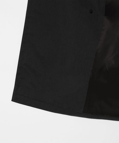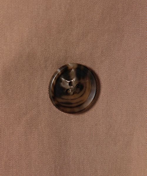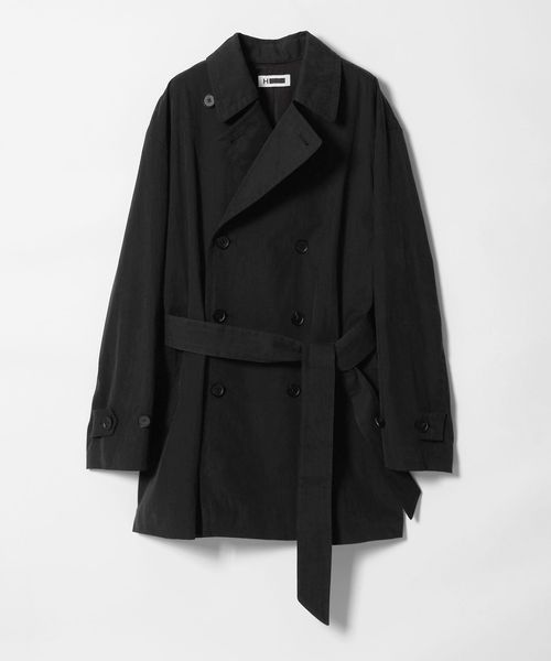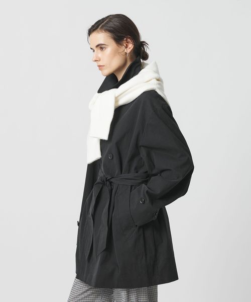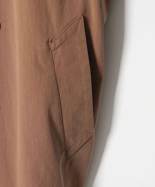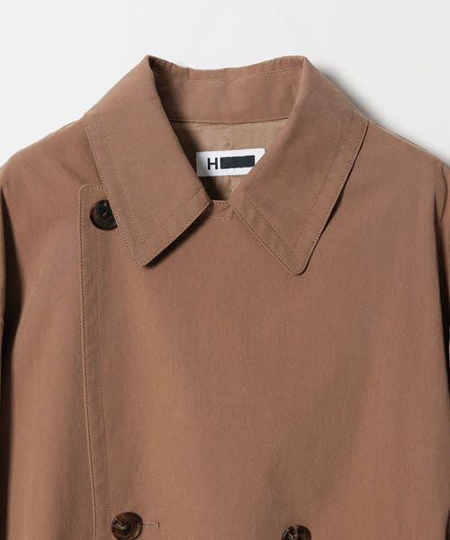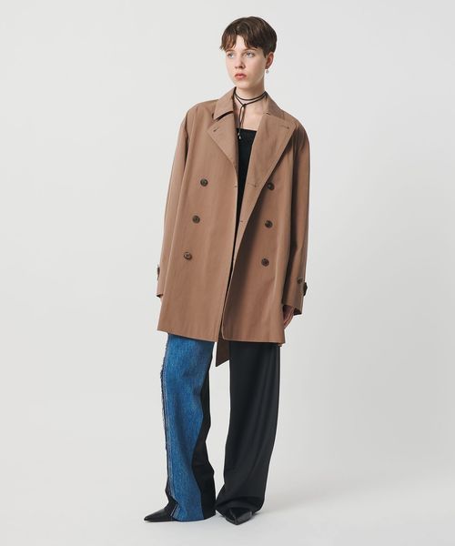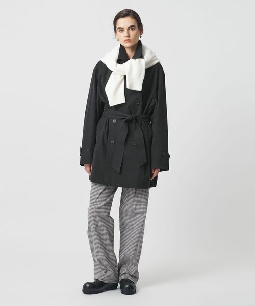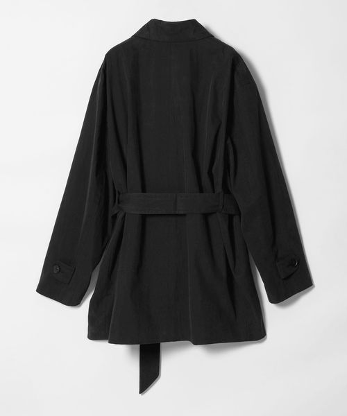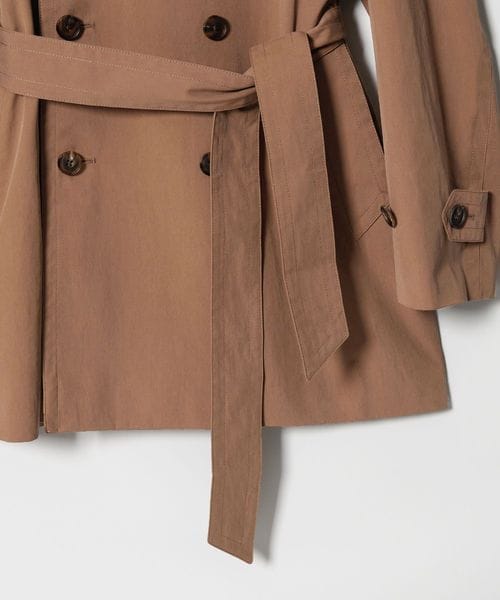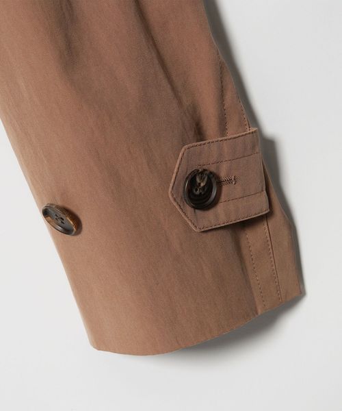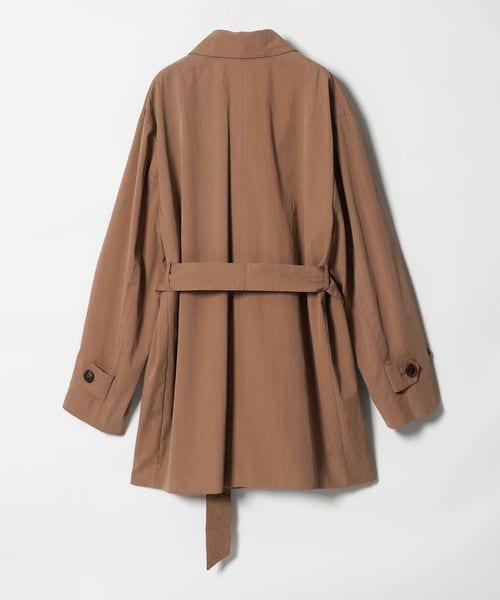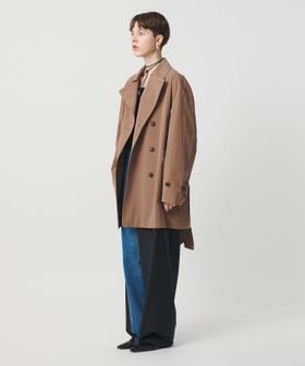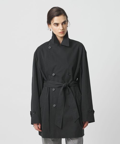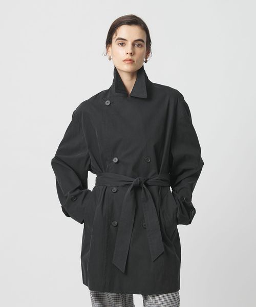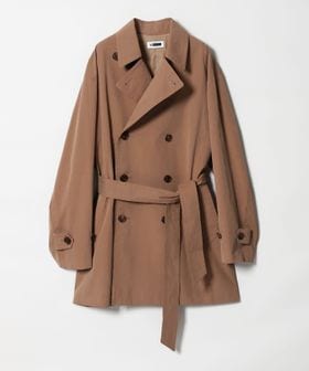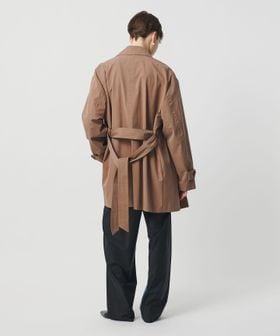 ゆったりとしたサイジングに、ミドルレングスのボディバランスが印象的なトレンチコートです。ヴィンテージ感のある風合いが特徴のツイル生地を使用し、ナイロンの絶妙なハリ感が心地よい一着。ラペルを留めたり、共布ベルトでウエストマークしたりと、アレンジ幅も広く楽しめます。パンツはもちろん、ミニボトムとも相性がよく、ニュアンスを利かせたバレルシルエットがファッションムードを高めてくれる一着。アーバンスタイルに映える存在感で、日常のアウターコーディネートをスタイリッシュに彩ります。