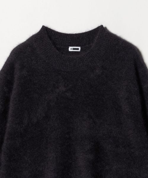 ヘアリーな質感をまとった、チャイニーズラクーンのクルーネックニットプルオーバーです。ボックスシルエットの身頃に、ストンとした長めのスリーブがさりげないニュアンスを演出。やわらかな風合いと上品な毛足感が贅沢な気分へと誘いながら、見た目にも華やかな印象を与えてくれます。シャツとのレイヤードも映え、パンツやスカートとも相性のよい着丈バランスも魅力です。主役から脇役までこなす存在感が着こなしの幅を広げ、シンプルなスタイリングにもリュクスなムードを添えてくれます。