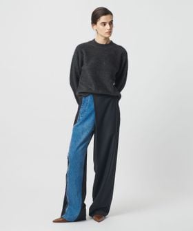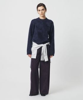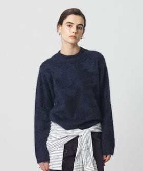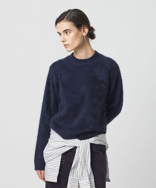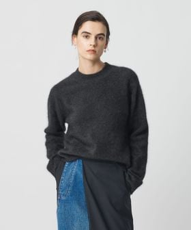 ヘアリーな質感をまとった、チャイニーズラクーンのクルーネックニットプルオーバーです。ボックスシルエットの身頃に、ストンとした長めのスリーブがさりげないニュアンスを演出。やわらかな風合いと上品な毛足感が贅沢な気分へと誘いながら、見た目にも華やかな印象を与えてくれます。シャツとのレイヤードも映え、パンツやスカートとも相性のよい着丈バランスも魅力です。主役から脇役までこなす存在感が着こなしの幅を広げ、シンプルなスタイリングにもリュクスなムードを添えてくれます。