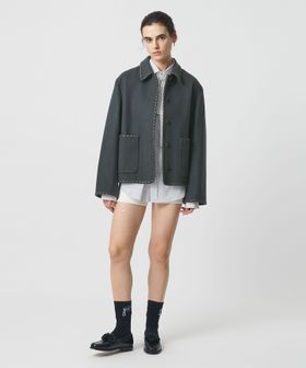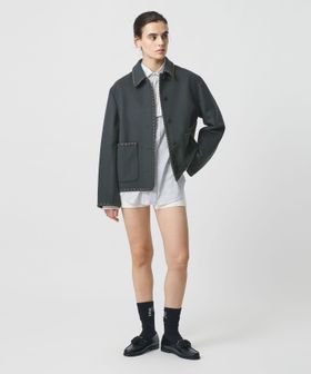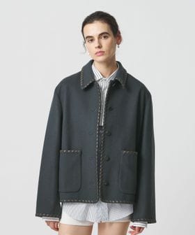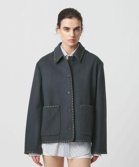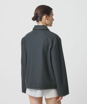 合成皮革のパイピングコードで飾りつけた、ショートレングスのメルトンジャケットです。品のある滑らかなボディに、ほんのり薫るウエスタン調のムードが新鮮な一着。愛らしさが際立つパッチポケットに、ボクシーなシルエット、長めのスリーブがさりげないニュアンスをプラス。軽快なデザインが日常に気負いなく楽しめ、力の抜けた大人のアーバンスタイルへと導きます。
