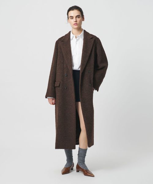 <H>ヘアリー ダブルブレスト ロングコート