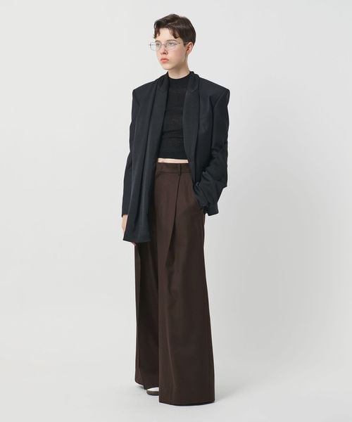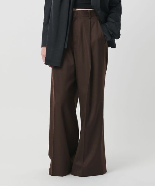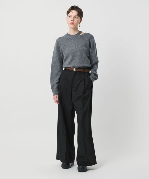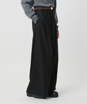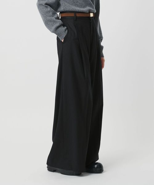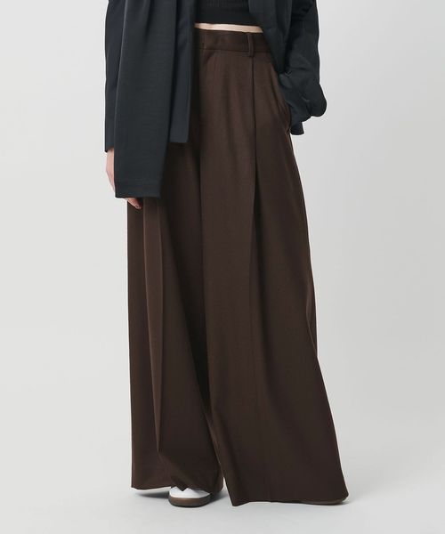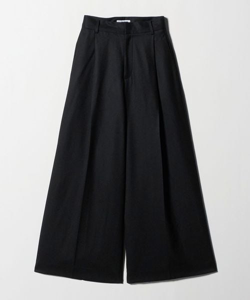 上品なサキソニー生地で仕立てたワイドパンツです。適度なハリ感とソフトな風合いに、袴のようなたっぷりとした分量感が華やかなシルエットを演出。コンパクトなトップスを合わせてメリハリを楽しんだり、同シリーズのシャツ(対象品番:16112000005)とのセットアップスタイルもおすすめです。贅沢なボリュームが存在感を放ちながら、シンプルな装いもスタイリッシュなムードに導きます。