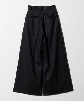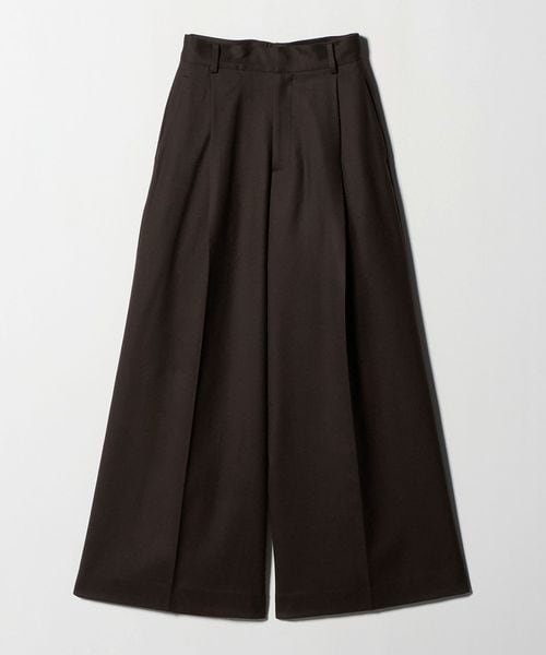 上品なサキソニー生地で仕立てたワイドパンツです。適度なハリ感とソフトな風合いに、袴のようなたっぷりとした分量感が華やかなシルエットを演出。コンパクトなトップスを合わせてメリハリを楽しんだり、同シリーズのシャツ(対象品番:16112000005)とのセットアップスタイルもおすすめです。贅沢なボリュームが存在感を放ちながら、シンプルな装いもスタイリッシュなムードに導きます。