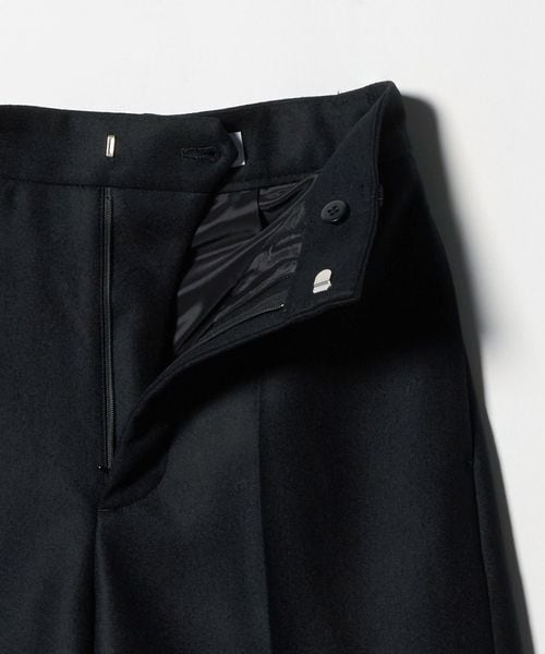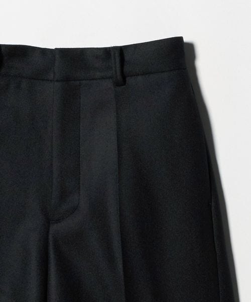 リュクスな重厚感と洗練されたムードが漂う、ウールメルトンのショートパンツです。細番手のウールを高密度で織り上げたメルトン生地を使用し、二重織の適度な厚みと張り感が特徴です。スラックスディテールのミニマルなボディバランスが、軽快でありながら品のある大人のスタイルを演出。ほどよい温もりと艶やかな表情が存在感を引き立て、冬の装いをスタイリッシュに彩ります。