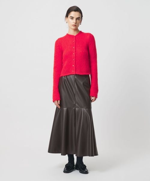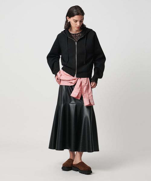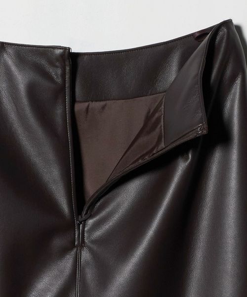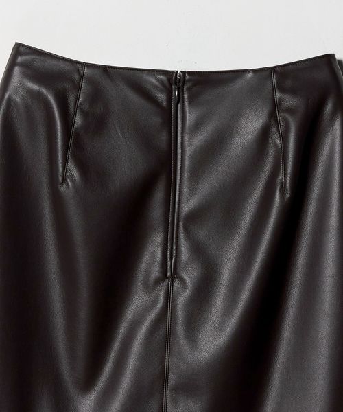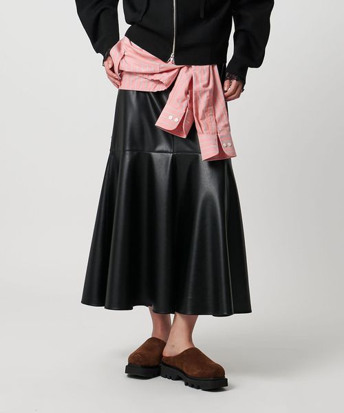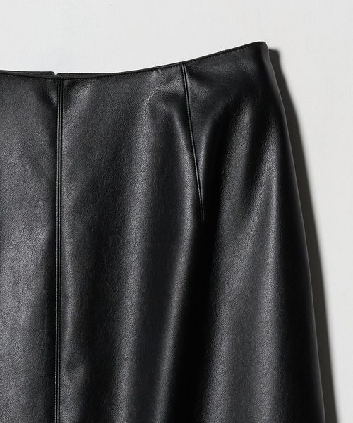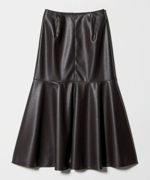 ハードな質感にロマンティックなムードが溶け込んだ、レザーライク素材のペプラムスカートです。やわらかく滑らかな風合いの合成皮革を使用し、すっきりとした腰回りから大胆に広がるフレアラインが美しい一着。シャープな質感が甘さをおさえ、モードな雰囲気へと誘いながらファッションムードを高めてくれます。プレーンなシャツやTシャツ、ざっくりとしたセーターなど、さまざまなアイテムとの素材のコントラストが映える一品。まとうだけで主役になる華やかな存在感が、大人のフェミニティを昇華します。