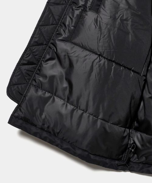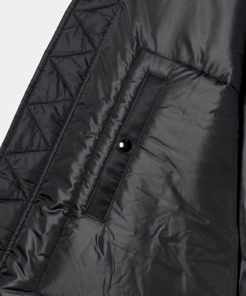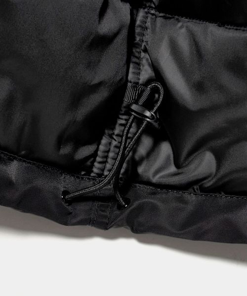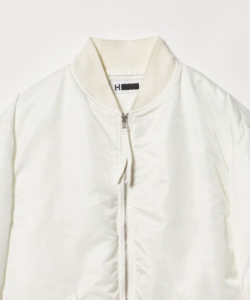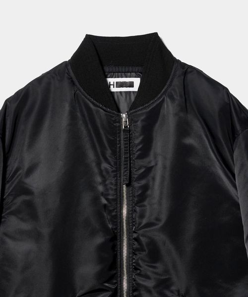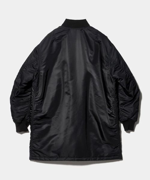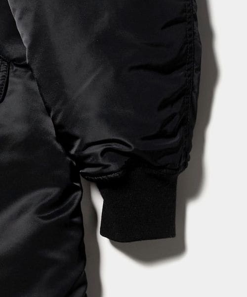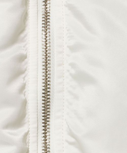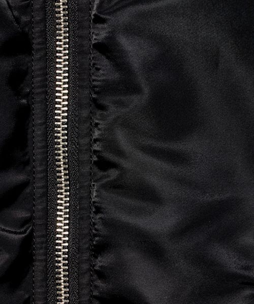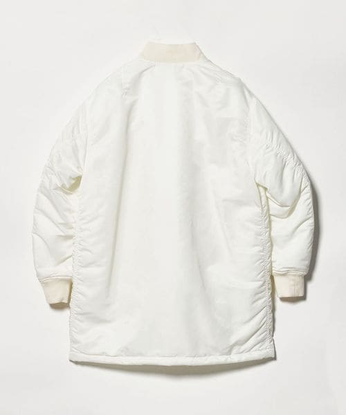ヒップが隠れる長めのレングスで仕立てたMA-1型ブルゾンです。しっかりとした肉感のナイロンに、中わた入りのあたたかさも兼ね備えたアイテム。張りのある生地が立体感を生み出し、ストンと落ちるボクシーなフォルムが存在感を引き立てます。裾のドローストリングで絞りを加えれば、お好みに合わせてシルエットのアレンジも可能です。ショーツやミニスカートを添えたり、リラクシーなワイドボトムとも好相性。日常のワードローブに寄り添いながら、クラス感あふれるアーバンスタイルに導くおすすめの一着。