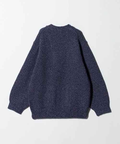 独特なミックスカラーが魅力のローゲージカーディガンです。2色の糸を撚り合わせた奥行のあるカラーリングが印象的なウールヤーンを使用しています。安心感のある長めのレングスに、パッチポケットを添えた愛らしいデザイン。パンツやミニ丈のボトムと好相性のよいボリュームバランスで、アウターライクにも頼れる存在感が、秋冬のコーディネートを華やかに彩ります。