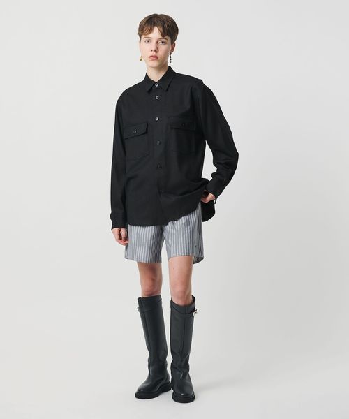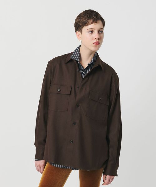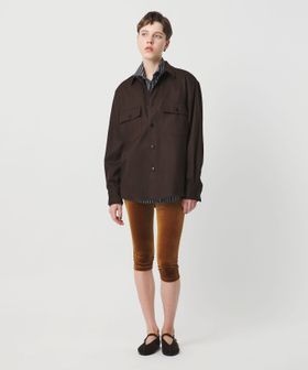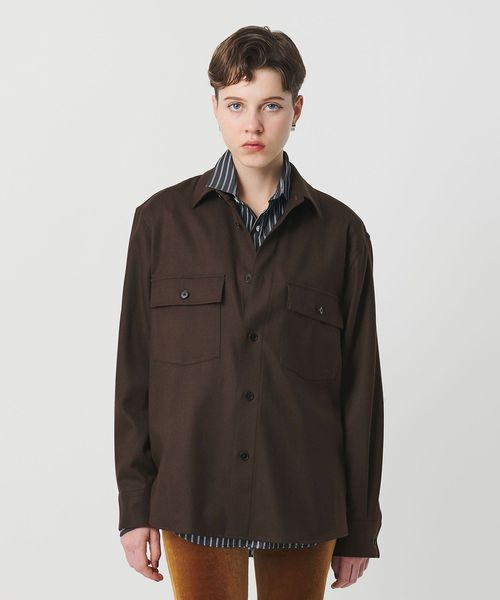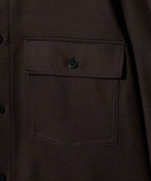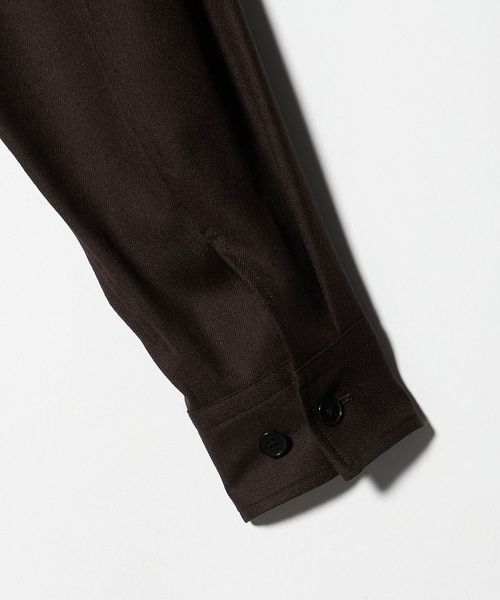 上品なサキソニー生地で仕立てたCPOシャツです。適度なハリ感とソフトな風合いに、ほどよいゆとりのあるサイジングが特徴の一着。一枚着としても羽織としても楽しめるバランスが着こなしの幅を広げ、合わせるボトムスも選ばず大活躍。素材を活かしたカジュアルすぎないフィーリングが、クリーンな大人のアーバンスタイルへと導きます。