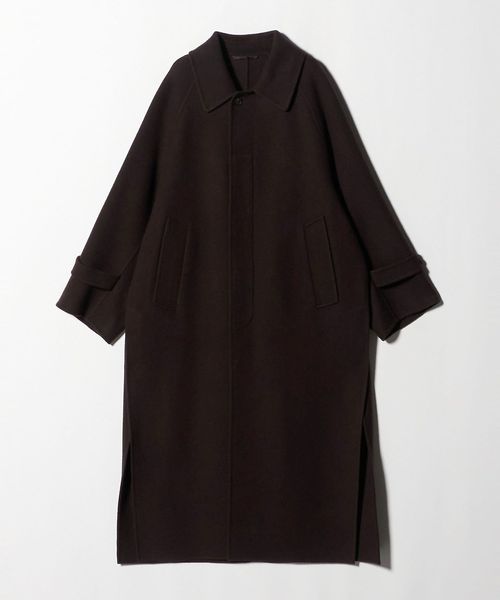 軽やかさと品のあるリラックスムードを携えた、リバー縫製の定番ロングコートです。たっぷりとしたスリーブに、贅沢なレングス設定、腰付近まで開く大胆な両サイドベンツが、着る人を華やかに印象付けます。クラシックなステンカラー型は、無造作に纏うのはもちろん、チンストラップで襟を立てたシャープなスタイルも様になる一着。カジュアルにもモードにも寄り添うミニマルな存在感が、個性を引き立てながら、秋冬のアウターコーディネートを素敵に彩ります。