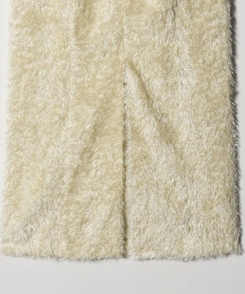 ミニマルなタイトボディに載せた、軽やかなカットジャカードが特徴のロングスカートです。上品な光沢と、ランダムに踊る毛足が存在感を引き立て、エッジの利いたニュアンススタイルを叶えます。バックスタイルはやや身体に沿うカーヴィーなラインを描き、甘すぎない洗練されたムードを演出。シンプルなトップス合わせも映え、ワントーンコーディネートで素材のメリハリを楽しむのもおすすめです。