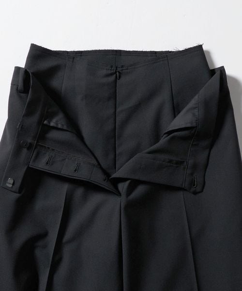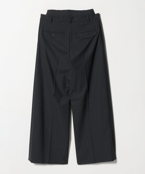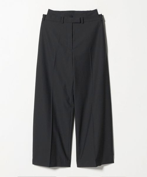 ダブルウエストがモダンなニュアンスを添えるワイドトラウザーズです。緩やかに弛む腰履きのスラックスに、内側に共地のコルセットを重ねたような斬新なレイヤードデザイン。軽やかでほどよい張りのある素材が端正な表情を生み出しながら、力の抜けたスタイルを演出します。印象的な装いを叶えながら、遊び心あふれるリラクシーなムードが、日常のスタイルを豊かな雰囲気へと導きます。