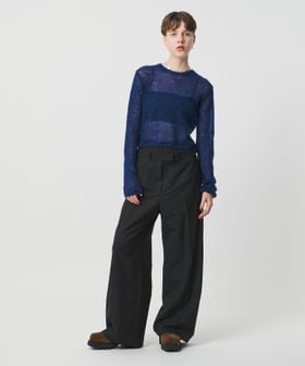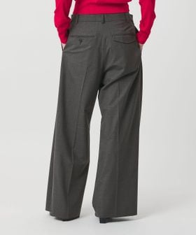 ダブルウエストがモダンなニュアンスを添えるワイドトラウザーズです。緩やかに弛む腰履きのスラックスに、内側に共地のコルセットを重ねたような斬新なレイヤードデザイン。軽やかでほどよい張りのある素材が端正な表情を生み出しながら、力の抜けたスタイルを演出します。印象的な装いを叶えながら、遊び心あふれるリラクシーなムードが、日常のスタイルを豊かな雰囲気へと導きます。