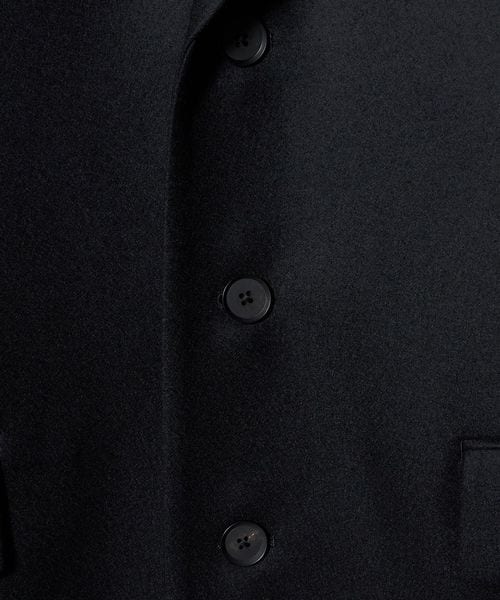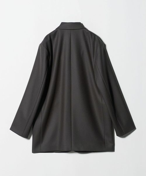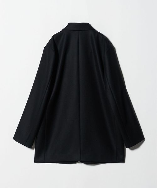 リュクスな重厚感と洗練さとれたムードが漂う、ウールメルトンのジャケット型コートです。細番手のウールを高密度で織り上げたメルトン生地を使用し、二重織の適度な厚みと張り感が特徴です。ゆったりとした立体感のあるボディバランスに、控えめなシングル仕立てのミニマルデザイン。保守的なニュアンスを与える3つボタンが、温かみのある贅沢な質感と相まって、品のある穏やかな空気感を醸し出します。デニム合わせのオーディナリーな装いはもちろん、ドレープスカートを添えたセンシュアルな着こなしもおすすめ。カジュアルにもモードにも寄り添いながら、無造作に纏うだけで存在感のあるスタイルに導くおすすめの一着。