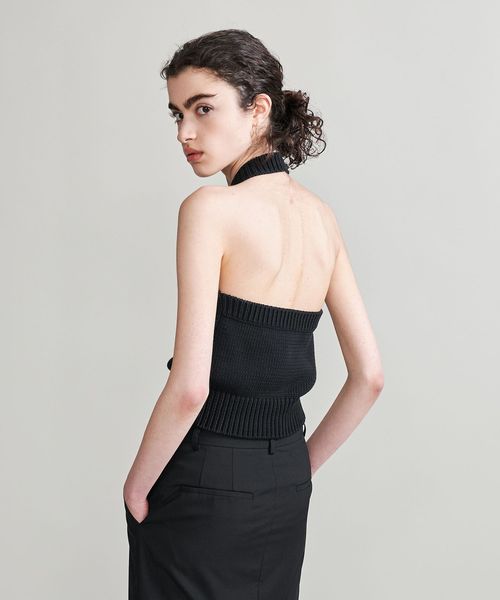 <H>コットンナイロン リリヤーン ホルターネックニット