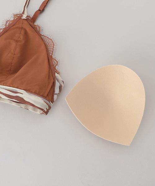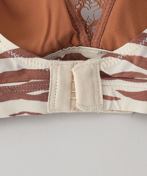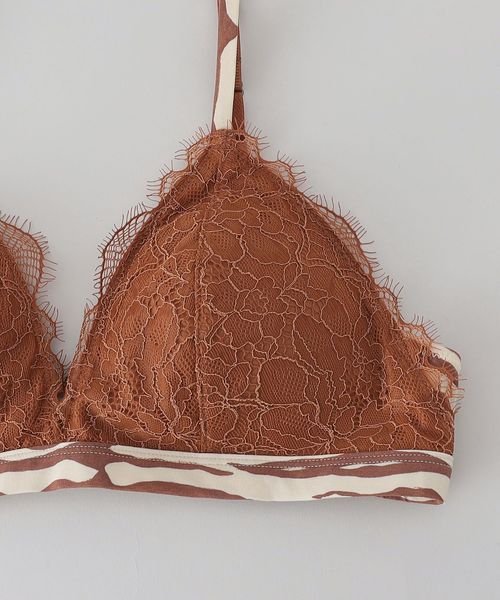 アニマル柄とレースのコンビネーションがロマンティックなブラです。ブラウンカラーのシックなカラーデザインが、大人のフェミニティを昇華します。お家でのリラックスタイムから日常まで豊かに寄り添いながら、特別なムードに導くおすすめの一品。