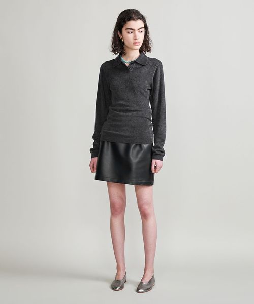 <H>モールヤーン ポロカラーニットロングスリーブ