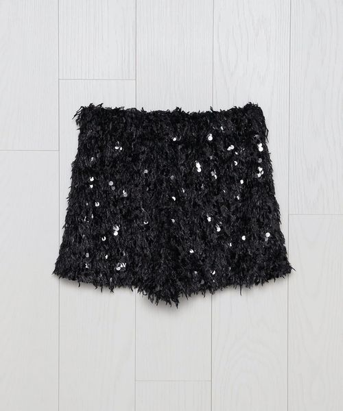 オールブラックに溶け込んだ、キラキラと覗くスパンコールが印象的なショートパンツです。フェザーのようなファンシー素材に載せた煌びやかな表情が、特別なムードに誘いながら日常の着こなしを盛り上げてくれます。スウェットやシャツなどのトラッドアイテムとの組み合わせや、ジャケットに添えたポイント使いも映えるアイテム。同シリーズのトップス(対象品番:16212991817)とのセットアップで、オールインワン風に楽しむのもおすすめです。