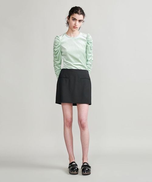 さらりとしたタッチのトロピカルクロスで仕立てたミニスカートです。トラッドな印象の箱ポケットディテールがさり気ないアクセントをプラス。バックファスナー・タイトシルエットのミニマルな表情が、洗練された大人のスタイルを演出します。やわらかなニットを添えたり、Tシャツ合わせも決まりやすく、フェミニティなバランスでコーディネートを華やかに彩ります。同シリーズのジャケット(対象品番:16222091146)とのセットアップコーディネートもおすすめです。