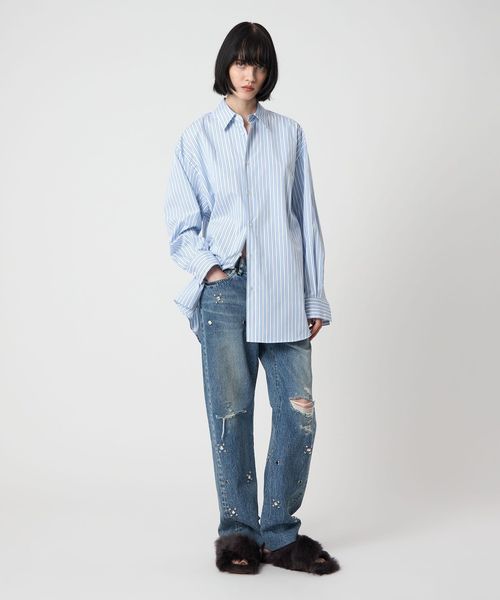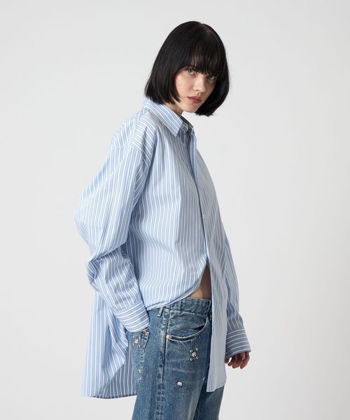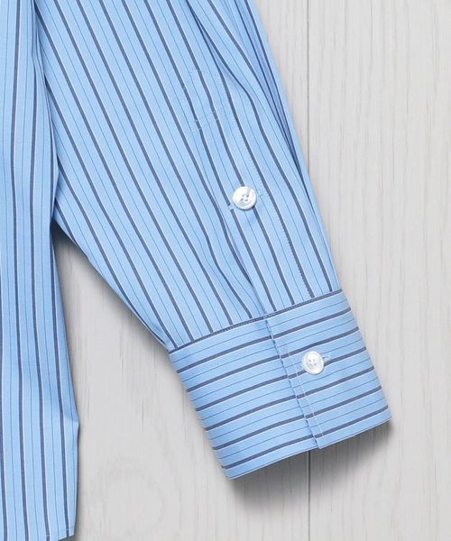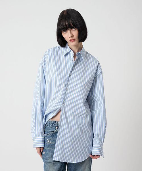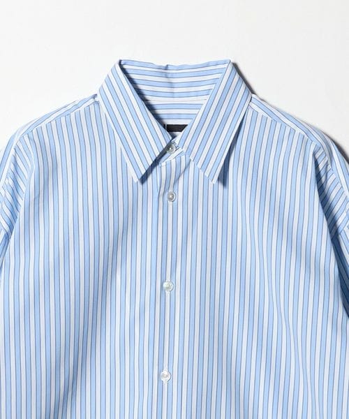 毛羽のないきれいな表面感が特徴のコットンブロードで仕立てたレギュラーカラーシャツです。ビッグシルエットのマニッシュな雰囲気が端正な魅力を漂わせながら、華やかなストライプ柄が自由な着こなしに導きます。季節を問わず袖を通せる汎用性の高さと、一枚着からインナーまで楽しめる着回し力を携えた一着。やや太めのストライプが個性を添え、都会的なカジュアルスタイルを演出します。