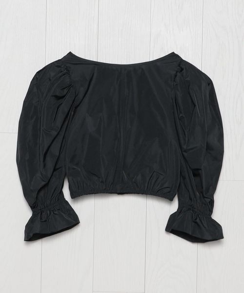 ギャザーをたっぷり寄せた袖と、コンパクトなボディバランスが特徴のブラウスです。軽く張りのある風合いと上品な光沢が魅力のポリエステルタフタで仕立てました。ミディアムグレーは、シャンブレーによるニュアンスのあるカラーが豊かな表情を覗かせます。メリハリを生むクロップド丈が軽快さとヘルシーなムードを際立たせ、トレンドのハイウエストボトムとも好相性。ゴム仕様の袖口は、肘上まで上げてボリューム感を強調した着こなしもおすすめです。開放感のあるネック、ボリュームスリーブ、フロントボタンの細やかなディテールが愛らしい雰囲気を添えながら、日常のコーディネートを華やかに彩ります。