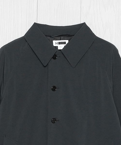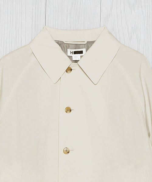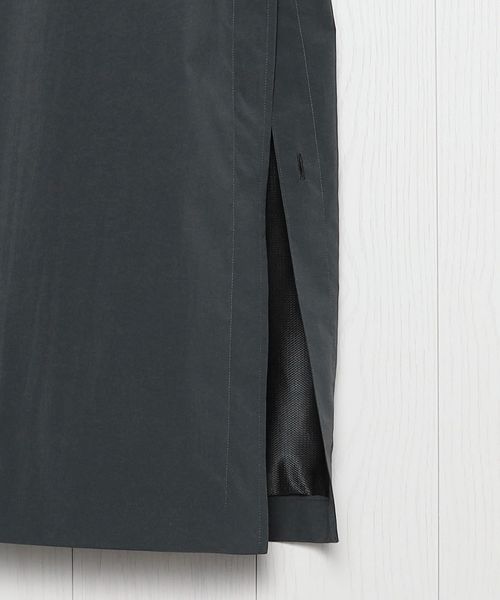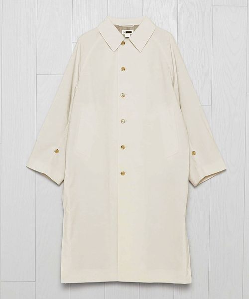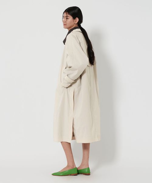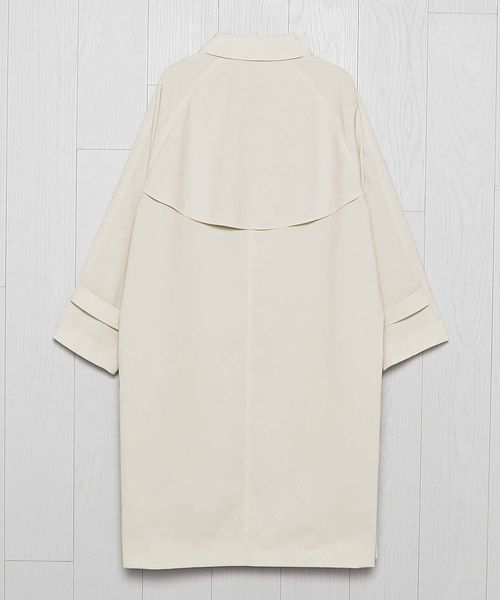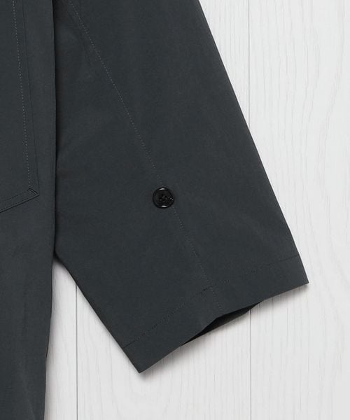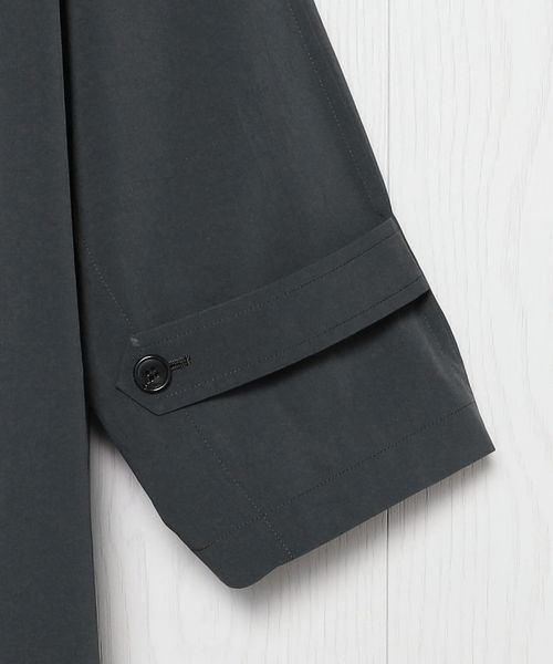 深めのサイドベンツが抜け感を与えるステンカラーコートです。やや長めのヨークがクラシックな印象を添え、袖周りを太くすることで肩肘張らないリラクシーな雰囲気を演出。フロントのボタンを多めに配すことで、視覚的なデザイン性をプラスしました。マットでラフな表情のポリエステル/タイプライター生地に、通気性に配慮したメッシュ裏地を備え、気負わず羽織れる軽快さがありながらも都会的なムードを纏った品のあるバランスが魅力の一着。ベルトレスのミニマルなデザインがカジュアルに合わせやすく、ミニスカートやバイカーショーツでコントラストを利かせた装いもおすすめです。