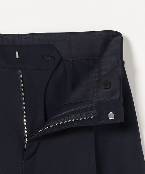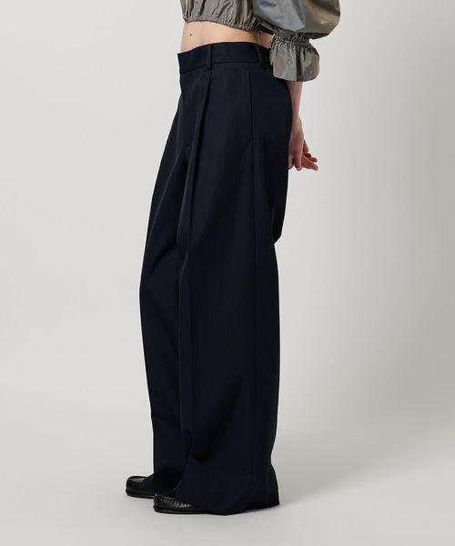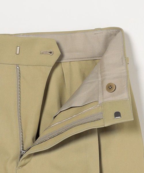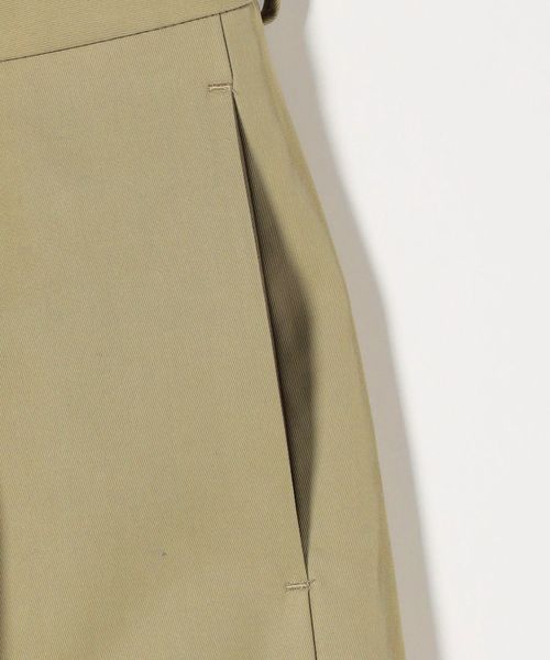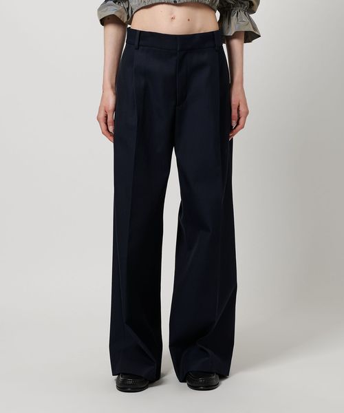 コットン/レーヨンのほどよい張り感ときれいめな綾目が特徴のワイドチノパンツです。動きのあるフロントタックがボリュームを生み出しながら、センタープレスの端正な表情が洗練されたカジュアルスタイルを演出。腰周りはボリュームをおさえつつ、しっかりとした太さのある綺麗なシルエットが魅力です。ヘルシーなタンクトップを添えたり、Tシャツをインしたミニマルな着こなしも映えるアイテム。シンプルな装いも、アーバンムード漂うクリーンなスタイルに導くおすすめの一着。