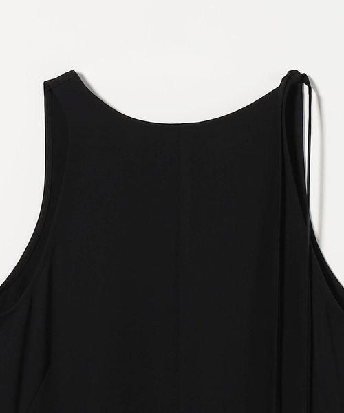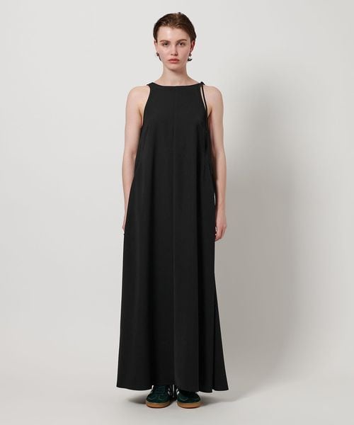 左側を紐で配したアシンメトリーなショルダーデザインがポイントのマキシワンピースです。力の抜けたモダンな雰囲気がファッションムードを高めてくれます。ほどよい光沢と張りのあるダブルクロスを使用し、合わせ方次第でロングシーズン楽しめる一着。一枚ではもちろん、トレンドのシアーインナーを添えたり、シックなジャケット合わせもおすすめです。