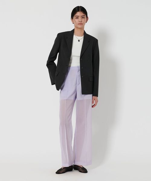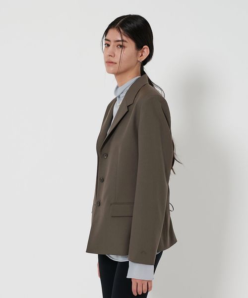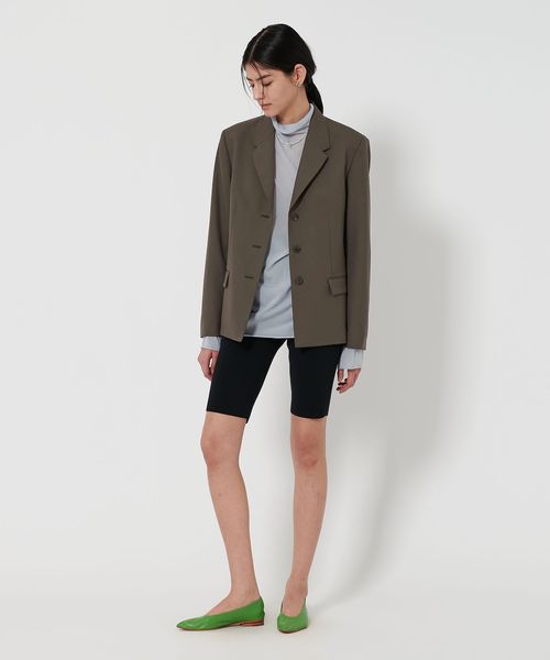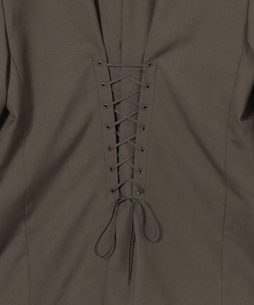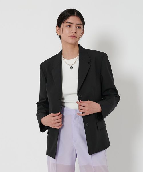 フロントとバックの対照的なデザインが特別なムードを添えるテーラードジャケットです。3つ釦のクラシック且つ保守的なムードに、後身頃はスリットとレースアップで大胆なエッジを利かせました。ほどよい張りのタイプライターを使用したマニッシュな風合いが、繊細なディテールを活かしながらモダンな雰囲気を演出します。ボリューム感のあるワイドパンツを添えたり、トレンドのバイカーショーツとも好相性。着映えを叶える凛とした佇まいが、何気ない装いもスタイリッシュな着こなしに導きます。