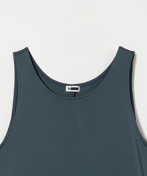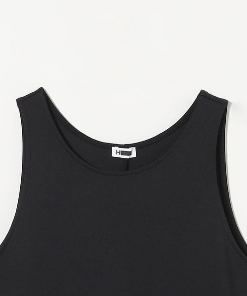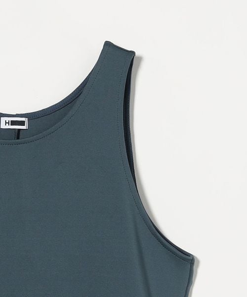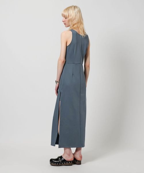 身体のラインに沿った、Iラインシルエットが特徴のタンク型ドレスです。ほどよい張りと伸びのある、ハイゲージのジャージー生地を使用しています。スカート部分はミニ丈を内側に重ね、左脇にあしらった深めのスリットがエッジーな抜け感を演出。一枚でシンプルに着こなすのはもちろん、ジャケットやブルゾンと組み合わせた重厚感のある装いもおすすめです。軽快なサンダルやスニーカーとも相性がよく、どことなく薫るモードな雰囲気が洗練されたスタイルへと導きます。