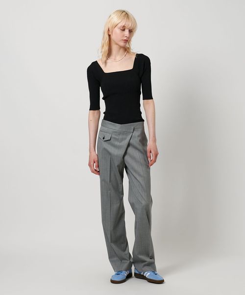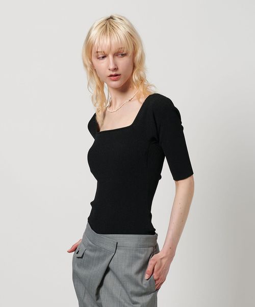 <H>スクエアネック ハーフスリーブ ニットプルオーバー