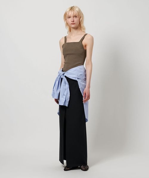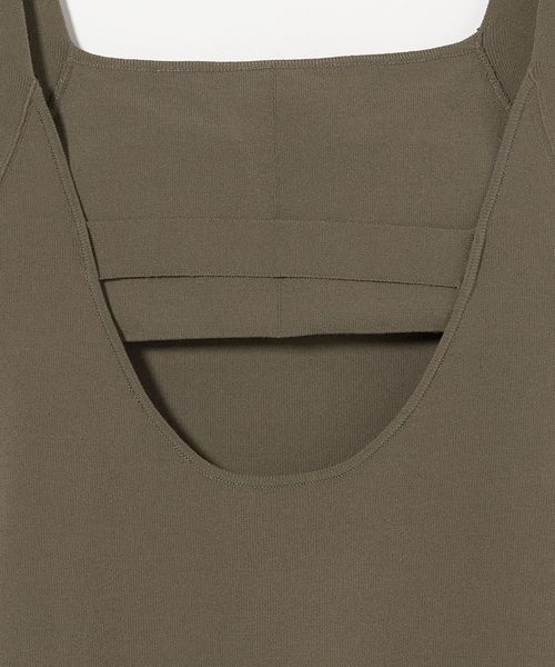 バックコンシャスなデザインと、品のあるニットボディのバランスが新鮮なキャミソールです。フロントはシャープなスクエアネックに、背中は開放感を出しストラップを添えたギャップのある組み合わせ。強撚タイプのさらりとした質感が心地よいレーヨン/ポリエステルで仕立て、手洗い可能な利便性に加え、取り外し可能なパッド付きで下着を気にせずスマートに楽しめます。計算尽くされた表情がニュアンスを生み出し、アーバンスタイルに寄り添う華やかな佇まいがファッションムードを高めてくれます。カジュアルなデニム合わせはもちろん、ワイドパンツなどのメリハリを利かせたコーディネートも素敵です。