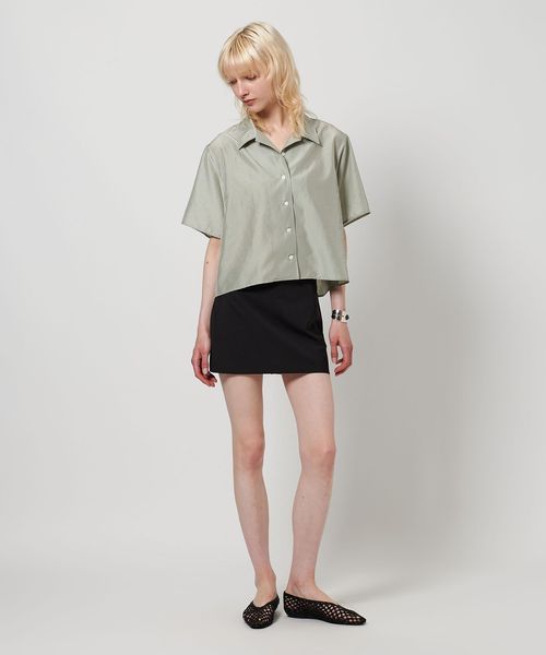 ショート&ワイドなミニマルシルエットが特徴のオープンカラーシャツです。ソフトで軋みのあるタッチが魅力の軽やかなポリエステルローンで仕立てました。スクエアカットのヘムラインがトレンドのバランスに導きながら、衿元で抜け感を持たせたリラクシーなデザイン。パンツからスカートまで相性がよく、シンプルな装いをモダンに昇華してくれます。