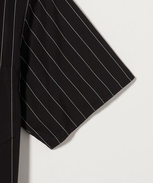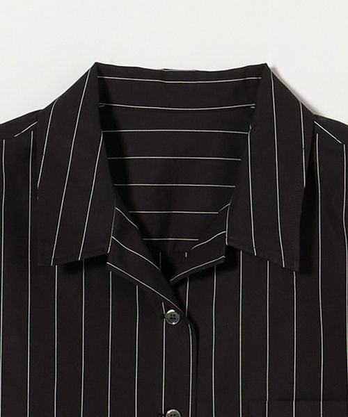 <H>コットン ピンストライプ オープンカラーシャツ