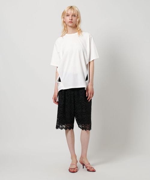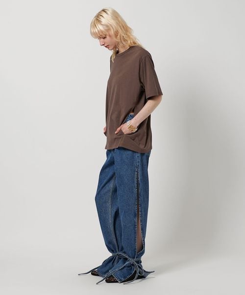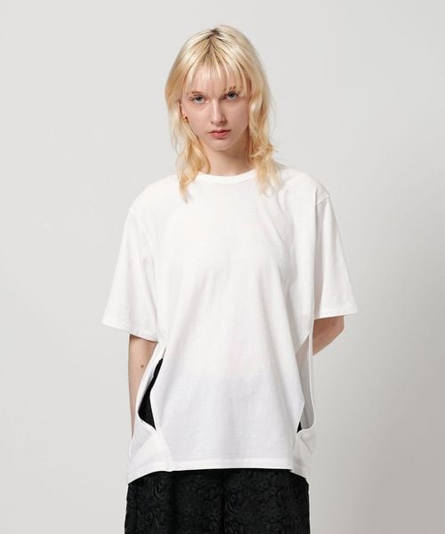 両脇に入れたスリット&タックがニュアンスを与えるオーバーサイズTシャツです。ヴィンテージムード漂うドライタッチな風合いのコットン天竺を使用しました。エッジを利かせた立体感のあるデザインが、単調になりがちな夏のファッションを盛り上げてくれます。定番のデニム合わせや、きれいめなボトムを添えたミックス感のある着こなしもおすすめ。無造作に纏うだけで、個性あふれるカジュアルスタイルに導く新鮮な一着。