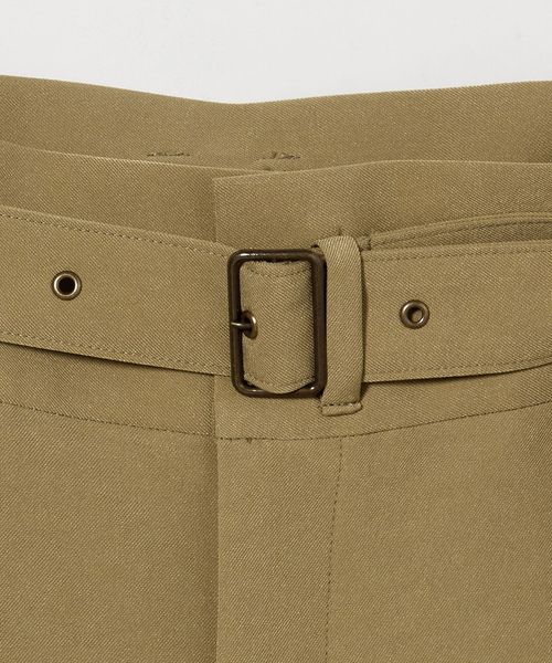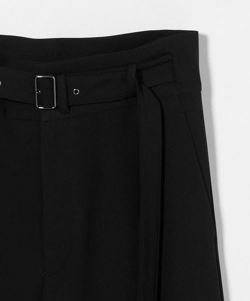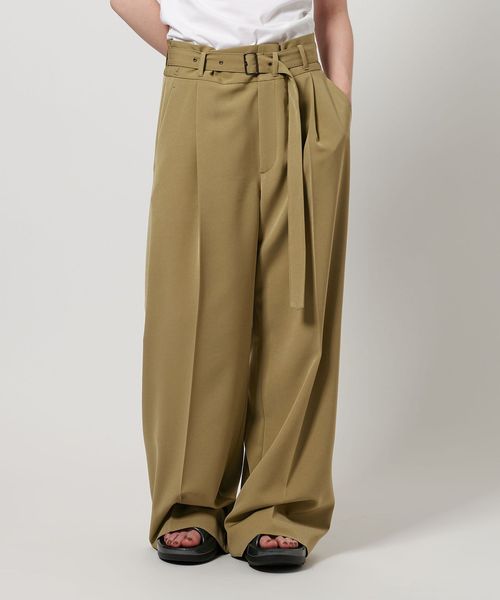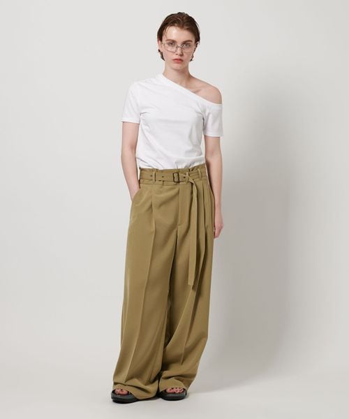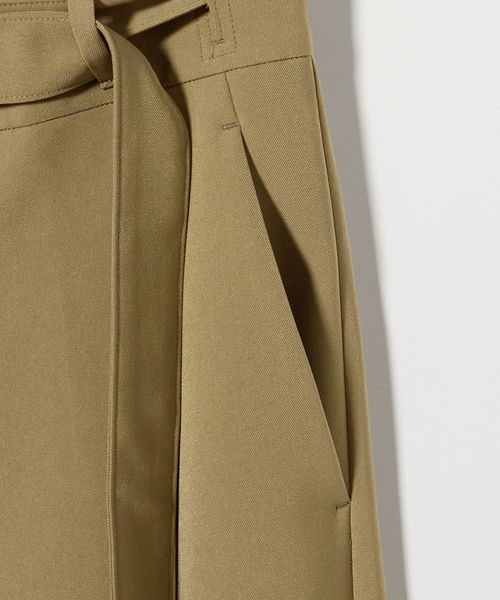 リラクシーで品のあるスタイルを叶える、共地ベルト付きのワイドパンツです。サイドに切り込みを施し、ベルトの通し方を内側/外側にアレンジすることで、ニュアンスを変えて楽しめます。ポリステル/アセテートのツイル生地を使用し、ほどよい落ち感を生むしなやかな風合いが魅力です。ウエストインも決まりやすく、カジュアルからモードまで幅広いコーディネートに馴染む万能なアイテム。たっぷりとした贅沢なボリュームが、存在感をさらに引き上げてくれます。