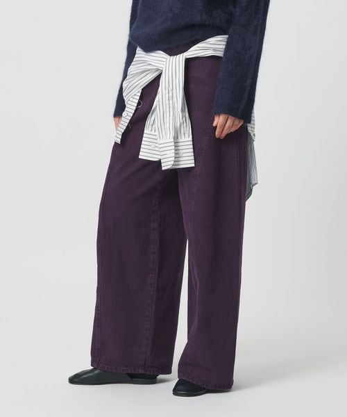 立体感のあるボリュームシルエットが特徴のデニムパンツです。ハイウエスト型のすっきりした腰回りに仕立てることで、大胆なフォルムが際立つ一着。13ozデニムを使用し、製品でストーンバイオ加工後にオーバーダイすることで奥行のある表情を出しています。シンプルなTシャツ合わせもモダンに着こなせ、毛足のあるニットや繊細なブラウスとも好相性。ベーシックとは一線を画す存在感が、個々のスタイルを引き立て、自由な着こなしへと導きます。