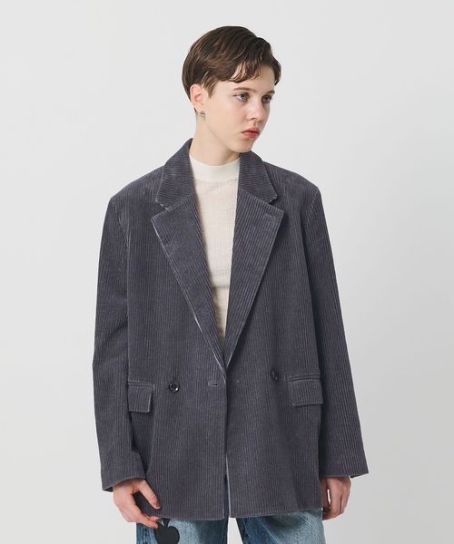 マニッシュなボクシーシルエットで仕立てたコーデュロイ仕立てのダブルブレストジャケットです。端正なショルダーラインと重厚感のあるワイドラペルに、太畝のカジュアルフィーリングが共存したボディバランスが魅力です。肩肘張らない穏やかなムードが存在感を際立たせ、自由な着こなしが叶う一着。ミニスカートを裾から覗かせたり、同素材のパンツ(対象品番:16142000001)とのセットアップコーディネートもおすすめです。