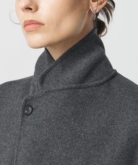 テーラードカラーの華やかさを兼ね備えたミニマルなロングコートです。なめらかな質感の上品なメルトンを使用した、 ほどよい厚みとしなやかな風合いが魅力です。贅沢なレングスが存在感を際立たせ、まとうだけでスタイルを印象付ける一着。パンツスタイルはもちろん、ミニスカートやショーツを合わせたバランスも素敵です。リバー縫製ならではの上質で繊細なコートは、日常に溶け込みながら豊かなムードに導くおすすめの一着。