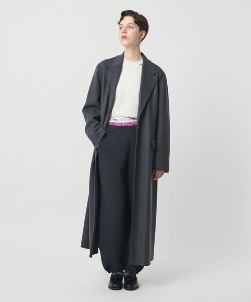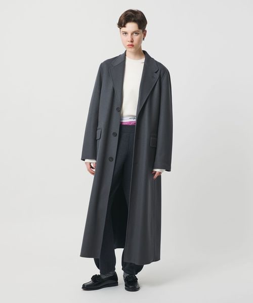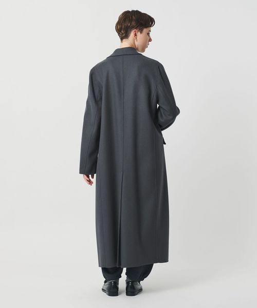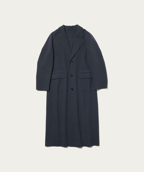 テーラードカラーの華やかさを兼ね備えたミニマルなロングコートです。なめらかな質感の上品なメルトンを使用した、 ほどよい厚みとしなやかな風合いが魅力です。贅沢なレングスが存在感を際立たせ、まとうだけでスタイルを印象付ける一着。パンツスタイルはもちろん、ミニスカートやショーツを合わせたバランスも素敵です。リバー縫製ならではの上質で繊細なコートは、日常に溶け込みながら豊かなムードに導くおすすめの一着。