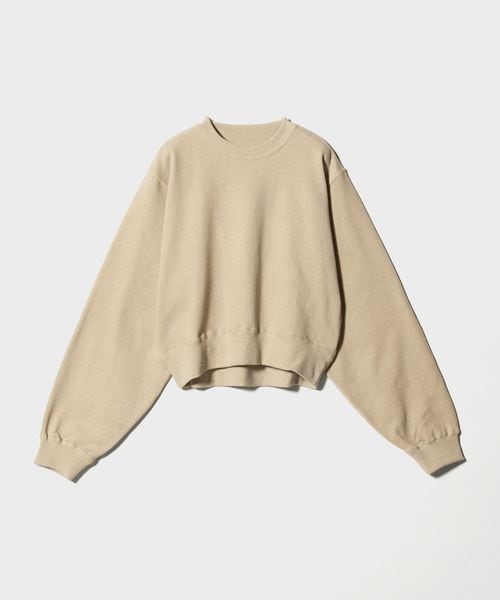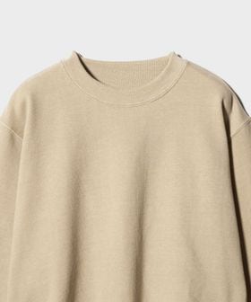 ヴィンテージ風の表情が魅力のスウェットプルオーバーです。両面に顔料染料プリントを施し、何度も洗いをかけてフェード感を出した裏毛を使用しています。すっきりとしたショートレングスに、リラックスムード漂うワイドシルエットが特徴の、メリハリのある穏やかなボディバランス。後下がりのヘムライン、バックネックに施した大きめのガゼットが、シンプルな中にニュアンスを添えます。同シリーズのパンツ(対象品番:16146000016)とのセットアップコーディネートや、シャツ合わせのレイヤードもおすすめです。