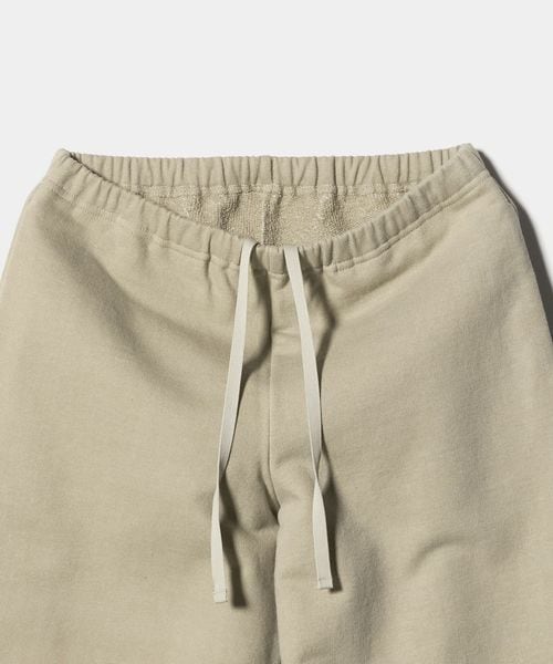 ヴィンテージ風の表情で仕上げた、ワイドシルエットのスウェットイージーパンツです。両面に顔料染料プリントを施し、何度も洗いをかけてフェード感を出した裏毛を使用しています。裾に紐を通すことでシルエットの変化が楽しめ、長めのレングスを携えた贅沢な分量感がスタイリッシュなムードを演出。タイトなカットソーを合わせたり、同シリーズのトップス(対象品番:16126000009)とのセットアップコーディネートもおすすめです。