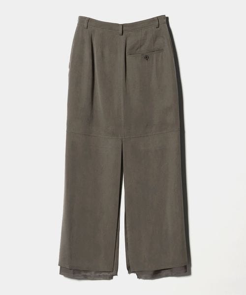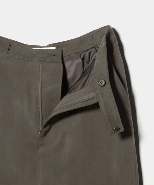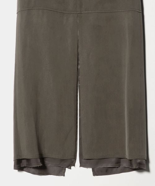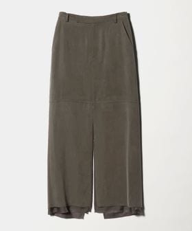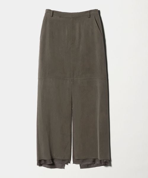 表と裏地の裾を断ち切りで仕立てた、モードなニュアンスが薫るロングスカートです。フィブリル加工を施し表面に独特な表情を付けた、落ち感のあるキュプラサテンを使用しています。前後に入れた大胆なロングスリットがエッジを覗かせ、ほどよい存在感を演出。シックなワントーンコーディネートや、タイトなトップスをインして縦長のシルエットを強調した装いもおすすめです。カジュアルなフィーリングがほどよい抜け感を与え、自由で飾らないアーバンスタイルへと導きます。