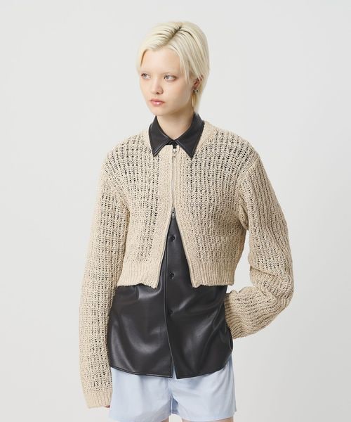 <H>ローゲージ ジップカーディガン