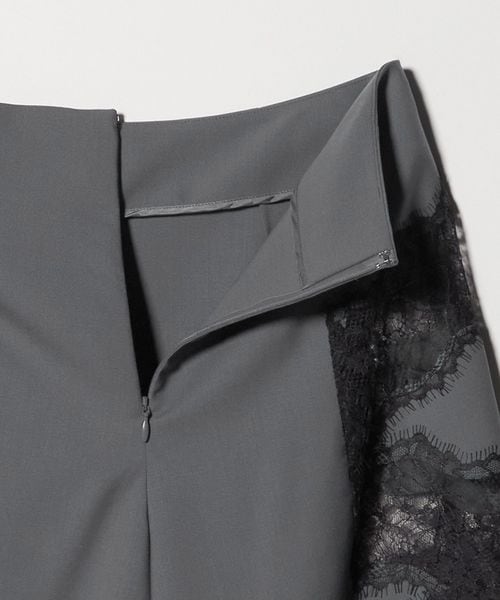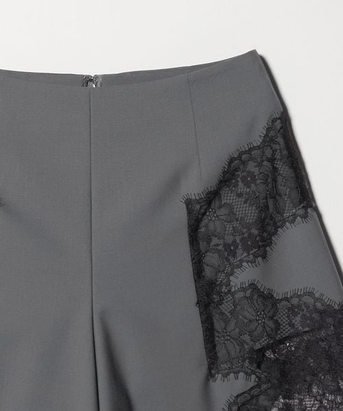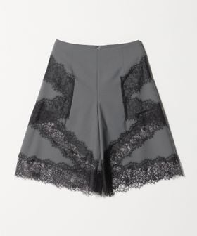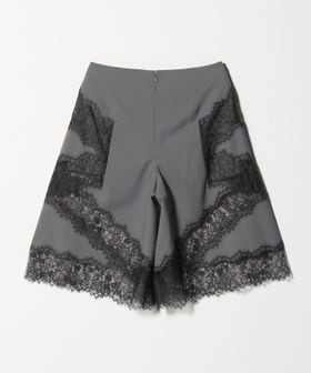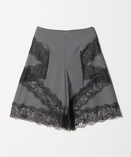 繊細なレースを贅沢にあしらったハーフパンツです。クリアな表面感のトロピカルクロスを使用し、端正な生地に重ねたブラックレースのトリミングが美しい一着。脇まで施したレースが奥行を生み出しながら、ファッションムードを高めてくれます。ボディスーツを合わせたり、大きめのトップスを添えて裾から覗かせた着こなしもおすすめ。甘さをおさえたコンテンポラリーなデザインが洗練された雰囲気をまといながら、日常のスタイルにエッジをプラスします。