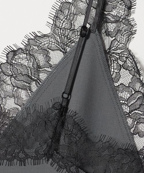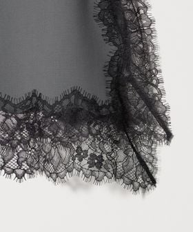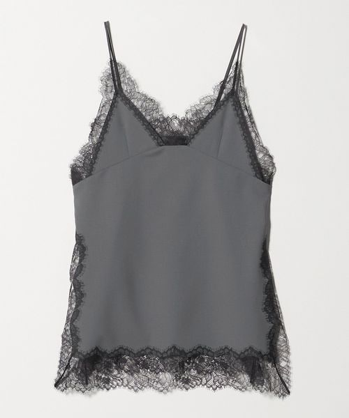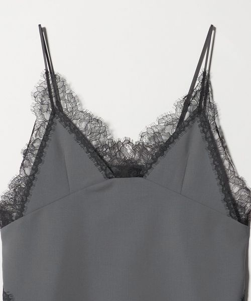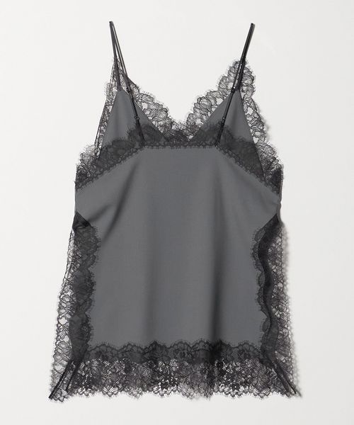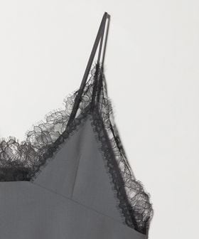 繊細なレースを贅沢にあしらったキャミソールです。クリアな表面感のトロピカルクロスを使用し、端正な生地に重ねたブラックレースのトリミングが美しい一着。華奢なインナーを添えたり、上からニットやジャケットを組み合わせてレイヤードで楽しむのもおすすめです。アジャスター付きのストラップ、ナチュラルなボクシーシルエットが汎用性を高め、さまざまな装いに幅広く寄り添うアイテム。シンプルな中に漂うモードなニュアンスが洗練された雰囲気をまといながら、日常のスタイルにエッジをプラスします。