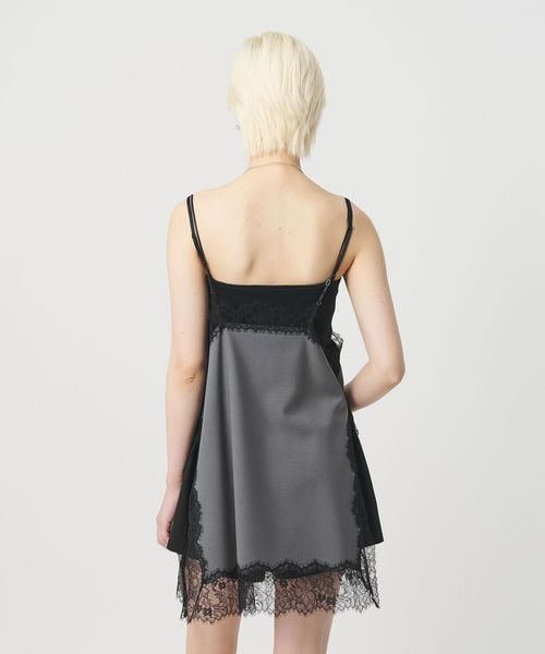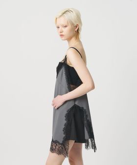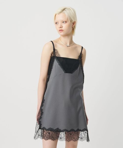 繊細なレースを贅沢にあしらったキャミソールです。クリアな表面感のトロピカルクロスを使用し、端正な生地に重ねたブラックレースのトリミングが美しい一着。華奢なインナーを添えたり、上からニットやジャケットを組み合わせてレイヤードで楽しむのもおすすめです。アジャスター付きのストラップ、ナチュラルなボクシーシルエットが汎用性を高め、さまざまな装いに幅広く寄り添うアイテム。シンプルな中に漂うモードなニュアンスが洗練された雰囲気をまといながら、日常のスタイルにエッジをプラスします。
