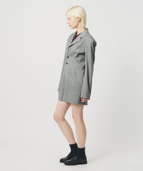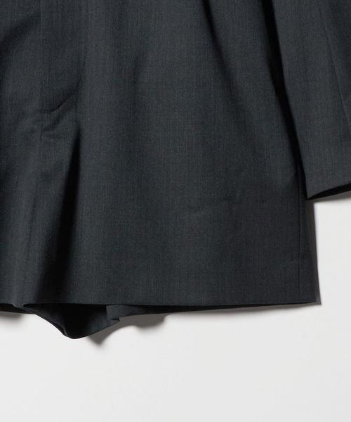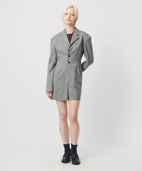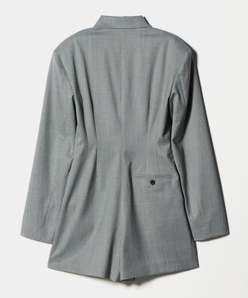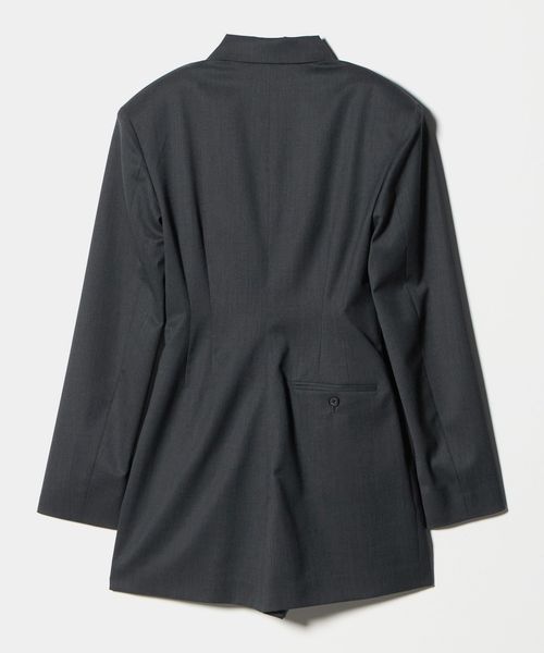 凛とした端正な雰囲気が漂う、ジャケット型オールインワンです。さらりとしたタッチのポリエステル×毛のギャバクロスを使用しています。肩パッド入りのハンサムなデザインに、ウエストにダーツを入れたメリハリのあるボディバランス。強調されたショルダーラインとウエストが存在感を際立たせ、纏うだけでスタイリッシュな装いを演出。短めのレングスが軽快な印象を叶えながら、ジャケットがもつ重厚なムードが新鮮なスタイルへと導きます。