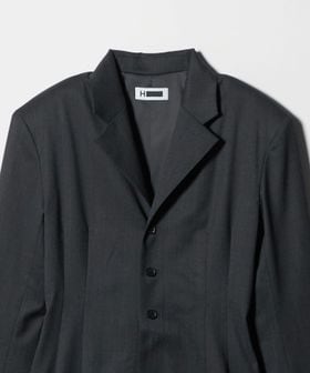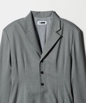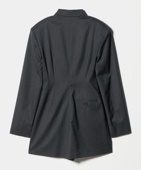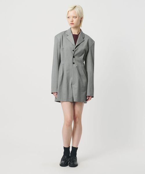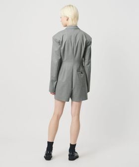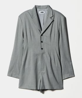 凛とした端正な雰囲気が漂う、ジャケット型オールインワンです。さらりとしたタッチのポリエステル×毛のギャバクロスを使用しています。肩パッド入りのハンサムなデザインに、ウエストにダーツを入れたメリハリのあるボディバランス。強調されたショルダーラインとウエストが存在感を際立たせ、纏うだけでスタイリッシュな装いを演出。短めのレングスが軽快な印象を叶えながら、ジャケットがもつ重厚なムードが新鮮なスタイルへと導きます。